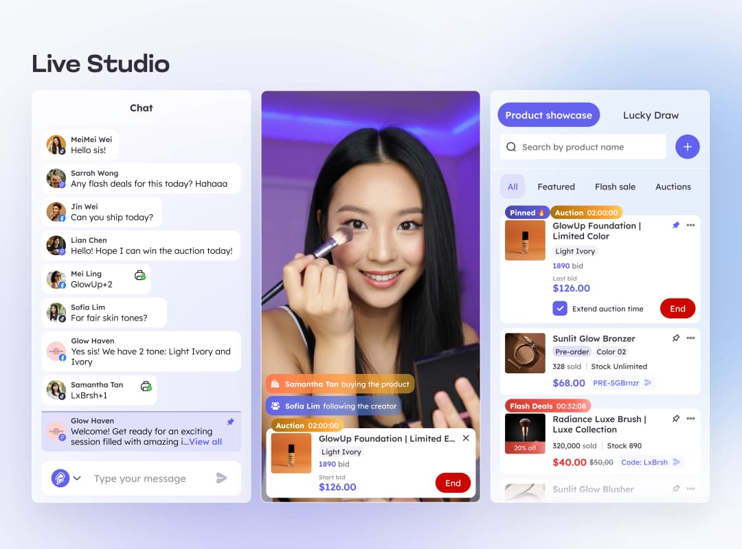 the simplest multi-channel live commerce platform,